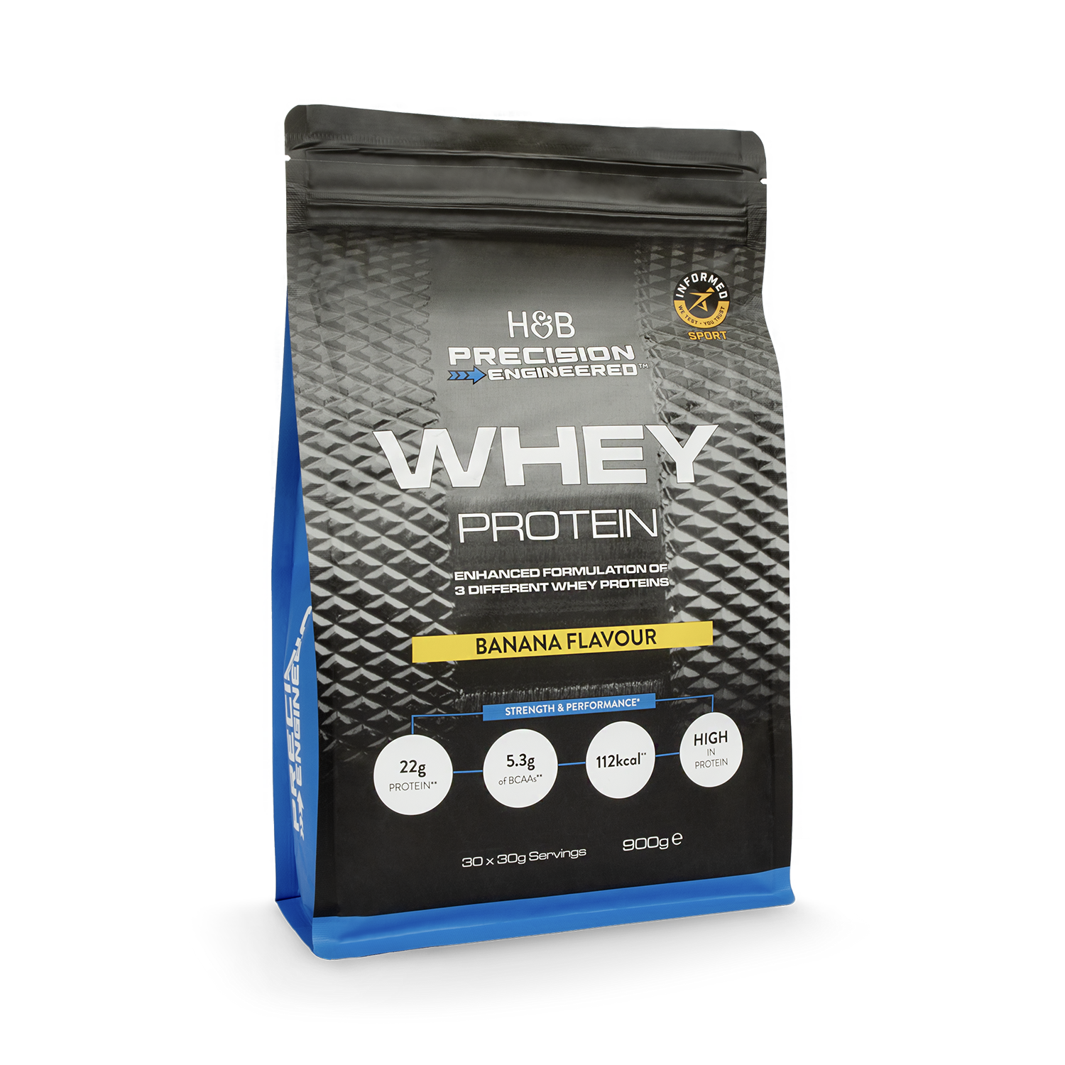The sports science sorted Want the ultimate support for muscle recovery and repair in a tasty banana flavour? Precision Engineered Performance Whey Protein Banana offers you an enhanced formulation with three different whey proteins to support your workout and muscle goals. Developed by scientists for advanced nutrition, this is a high-quality protein drink that contains L-Leucine, L-Isoleucine and L-Valine – the three branched chain amino acids (BCAAs) which play a significant role in the building blocks for protein. Precision Engineered Whey is also high in protein, containing 21g per serving, contributing to the growth and maintenance of muscle mass. This product is Informed Sport certified to provide the highest level of assurance for athletes to use. What’s inside? 22g of protein per serving, for the growth and maintenance of muscle mass 4.8 g of BCAAs per serving, to support the building blocks for protein How to use Blend one scoop (30g) of Performance Whey Protein into 200ml of water, milk or yoghurt For best results, use an electric blender and once mixed, the product should be consumed within 20 minutes Take one to three servings daily. And remember, it’s important to stay hydrated during and after training. Consume as part of a varied and balanced diet and a healthy lifestyle